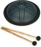 From Meinl Sonic Energy is the Mini Steel Tongue Drum with pre-tuned notes for any music lover, teacher, or sound therapy practitioner to play. This scaled-down version of our standard steel tongue drums is a fun size for endless possibilities on where to play. From yoga and sound therapy to classrooms, offices, or your coffee table, this 6” diameter drum can be played by anyone, anywhere, regardless of skill. Its pre-tuned scale means there are no wrong notes, and the sound is ethereal and soothing (like a soft steel pan drum). Includes two soft rubber mallets for a full and tranquil tone.